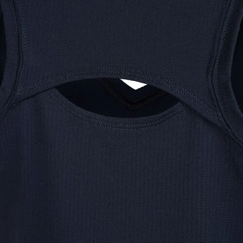 - Applied logo, Mesh tissue, Racer back, Reflective logo, Back cut-out, V-neck, Decorative stitching
